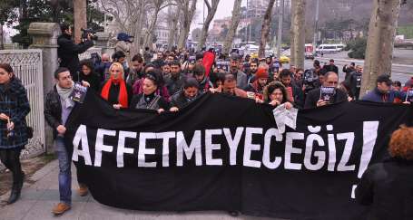 Sabah 9.30’da Dolmabahçe’de toplanan Hrant’ın Arkadaşları, aydınlar, siyasi parti ve kitle örgütü temsilcileri ile gazeteciler “Afettmeyeceğiz” pankartı açarak Beşiktaş’a yürüdü.